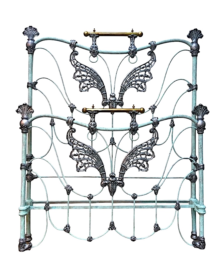 The butterfly design can appear in several variations on antique iron beds. Some designs feature a single butterfly placed at the center of the bed’s headboard, while others incorporate multiple butterflies in a cascading pattern across the frame. The use of butterflies in these designs often reflects the importance of nature in art during the Victorian and Edwardian periods, when floral and fauna motifs were especially popular. Whether subtle or bold, the butterfly design adds a layer of meaning to the vintage iron bed, transforming a functional piece of furniture into a work of art.